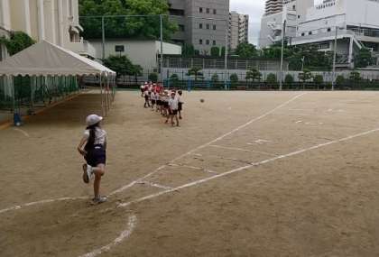 2年生が、スポーツテストの種目「ソフトボール投げ」に取り組んでいます。