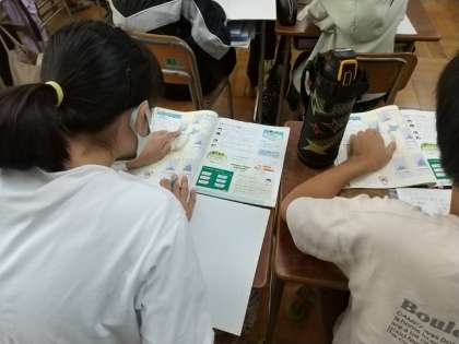 教科書の資料などを読み取り、丁寧にノートにまとめていました。