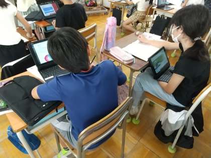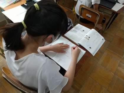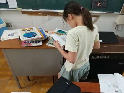 5年生は、国語の書く活動で、環境問題について調べたことを報告文にまとめる活動をしています。