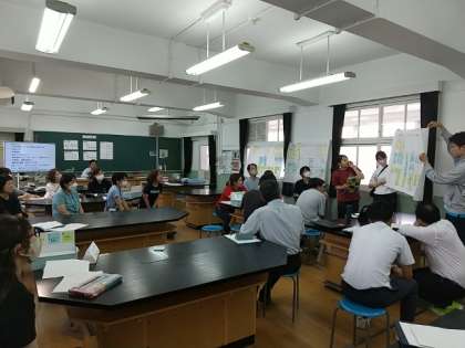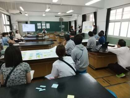 放課後、5時間目に実施した校内研究授業をもとにして、授業研究協議会を行いました。