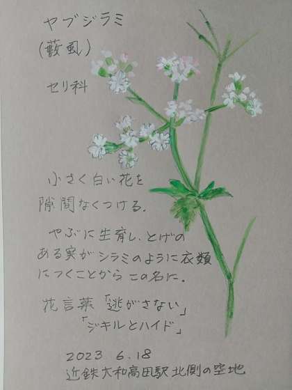 径1mmにみたない小さな花をびっしりつけ、そよ風に揺れていた。