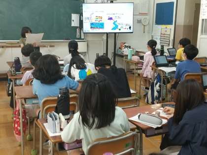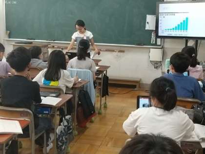 調べた内容や自分の意見をプレゼンにまとめて発表していました。
