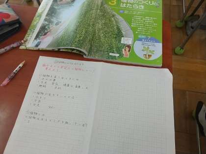 6年生は、理科で植物が根から取り入れた水をどのよう体全体に運ぶのか学習しています。葉の表面や裏がどのようになっているのかも、今後顕微鏡などで調べていきます。