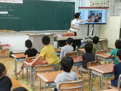 今日は、1年生の子どもたちに、なかよし学級の様子を紹介し、ふだんの教室と違うところや何のためにどのような支援を受けながら学習を進めているか学びました。