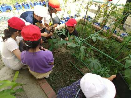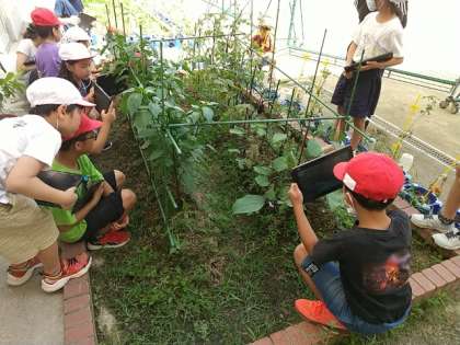 2年生が、育てている野菜の観察をしていました。