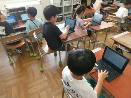 6月のサタデースクールで、6年生に操作を教えてもらい、ひと月あまりしかたっていませんが、使い方にもずいぶん慣れてきたようです。