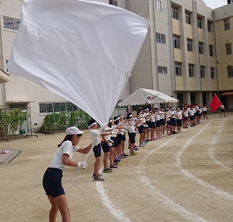 早い学年では1学期からテーマや振付を決めて取り組んだ団体演技。