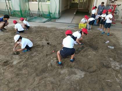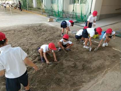 砂の感触を感じながら、スコップで川のようにほったり、おだんごをつくったりして楽しみました。