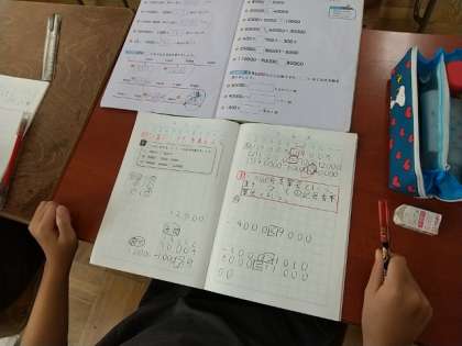 先生の説明をしっかり聞いて、ノートもきちんと書けています。