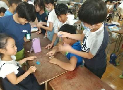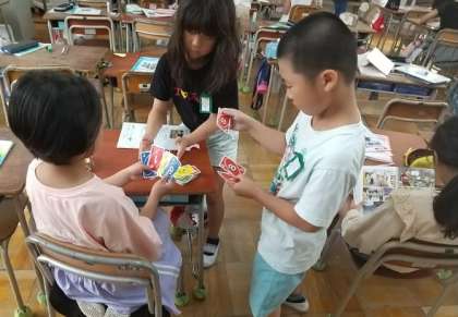 運動場に出られないとき、学校図書館に行けないときは、教室で工夫して友だちと過ごしています。