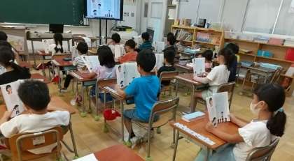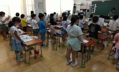 「はなしたいな ききたいな」という、みんなの前で夏休みにしたことや、夏休みの出来事を文章にまとめて発表する学習です。