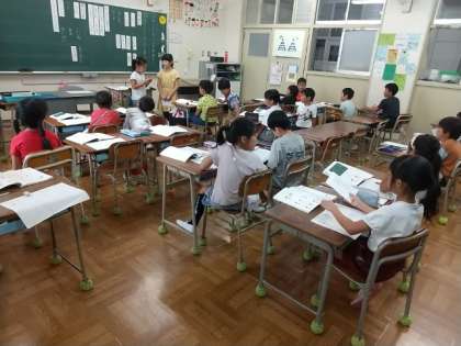 2年生は、国語で、話をつなぐための話し方、聞き方について学習しています。
