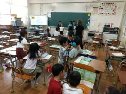 2年生が音楽で「むしのこえ」の歌をグループごとに発表していました。