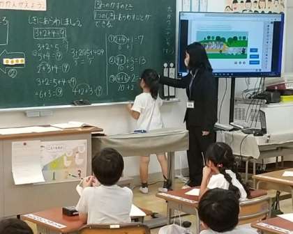 3つの数をたすとき、どんな式で計算したらよいか、学習しました。