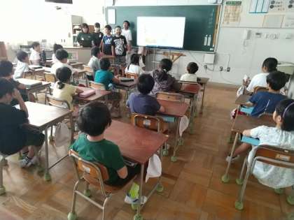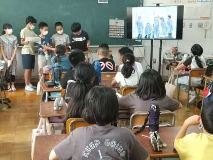6年生が、グループに分かれ1〜5年生の各学級で原爆投下について書かれた絵本の読み聞かせを行いました。