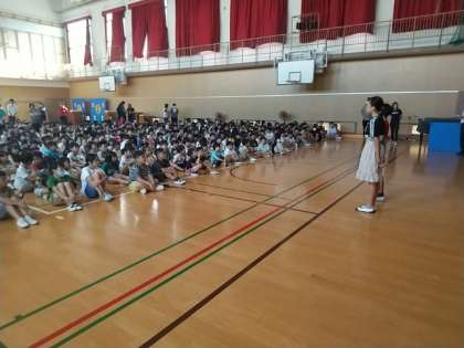 2週間の教育実習に来ていた学生のあいさつがありました。子どもたちが拍手を送ってくれました。