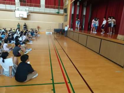 児童集会では、6年生のリーダーがグループをまとめ、5・6年生の集会委員会の子どもたちが、進行してくれます。