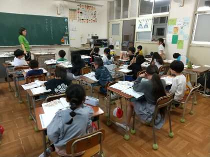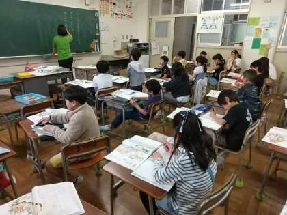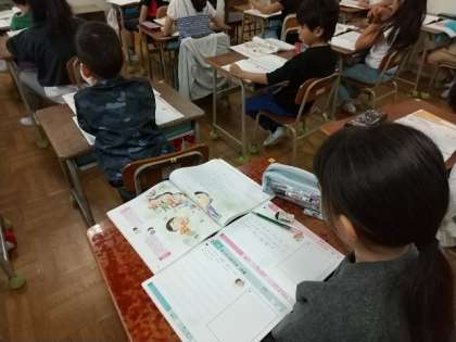 2年生が道徳の時間に、すべりだいの順番に割り込む子が、いた時の行動について考えていました。
