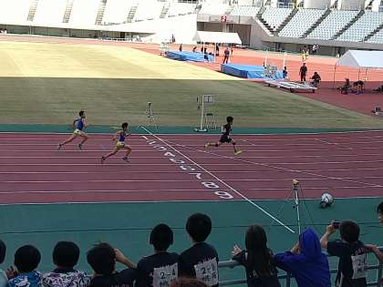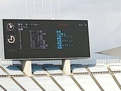 スタジアムのビジョンには、決勝スタートリストが映し出され、5レーンと7レーンに桃陽の文字が!