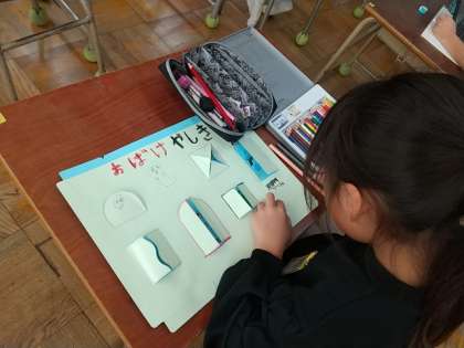 2年生は、図画工作でカッターナイフを使って紙工作をしています。