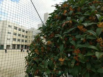 桃陽小学校の校庭は広いとは言えませんが、金木犀(キンモクセイ)の木がたくさんあり、この時期芳香を漂わせています。
