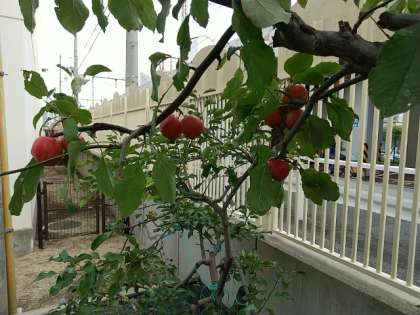 学習園の果実も色づき、ついばみに訪れる鳥たちを喜ばせているようです。