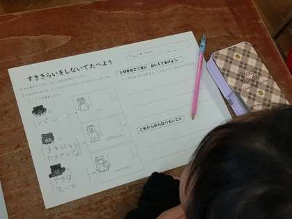 最初に紙芝居を読んでいただき、好き嫌いをするのはよくないことを知りました。