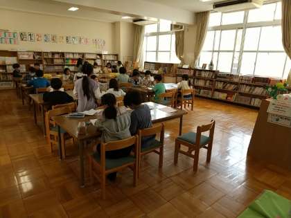 各学級週に1時間は、優先的に学校図書館を活用できる時間が割り振られています。自分で選んだ本を読んだり、教科の調べ学習に関係する本を探して必要な事柄をまとめたり、いろいろな活用の仕方があります。