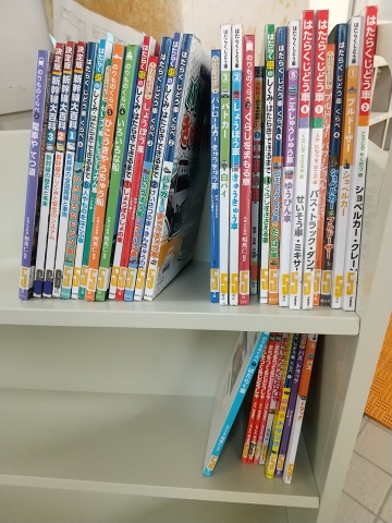 主幹司書の先生が、はたらく乗り物について書かれた本を、ブックトラックに集めてくださいました。
