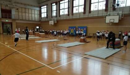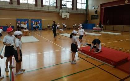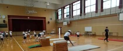 3年生が、跳び箱運動やマット運動に取り組んでいます。