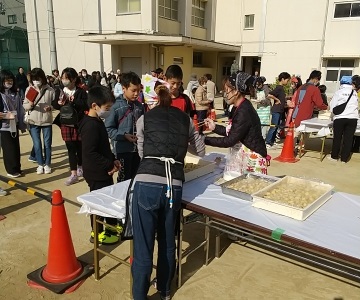 もちつき体験やつきあがったもちの試食を楽しんでいます。