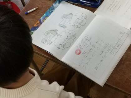 子どもたちは、物語を読んで、場面ごとに登場人物の気持ちを考えノートにまとめていました。
