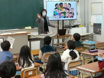 1年生が、学校の中や町の中にあるユニバーサルデザインについて学習しました。
