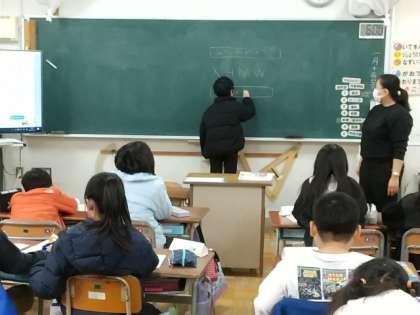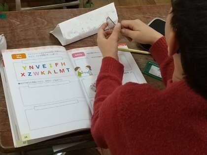 3年生が、外国語活動の時間に、アルファベットの大文字を学習していました。