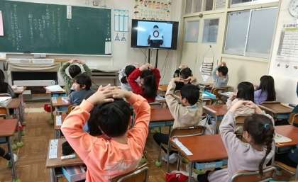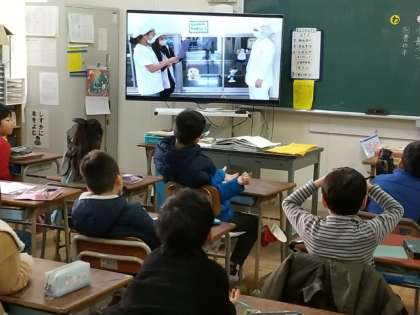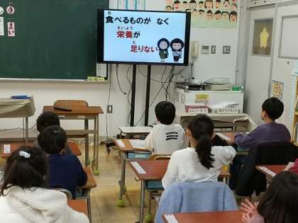 今日の児童集会は、テレビ放送で給食委員の子どもたちの発表を見ました。