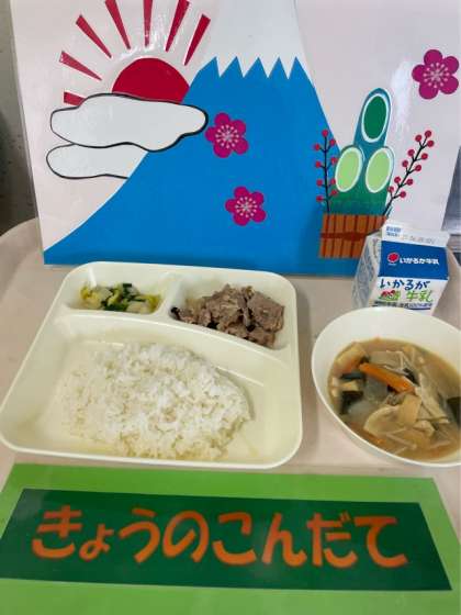 ●豚肉のごまだれ焼き ●みそ汁 ●きくなとはくさいのおひたし ●ごはん ●牛乳