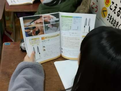 今日は、堺市の伝統工芸、包丁づくりについて学習していました。