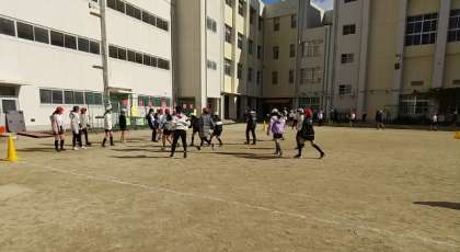 ドリブルやパスなどについて、ゲーム性を取り入れ楽しく活動させていただきました。
