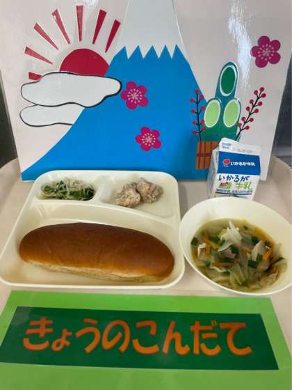 ●鶏肉のからあげ ●中華スープ ●チンゲンサイともやしの甘酢あえ ●黒糖パン ●牛乳
