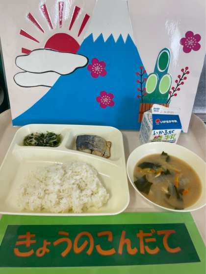 ●さごしのしょうゆだれかけ ●とうふのみそ汁 ●みずなの煮びたし ●ごはん ●牛乳