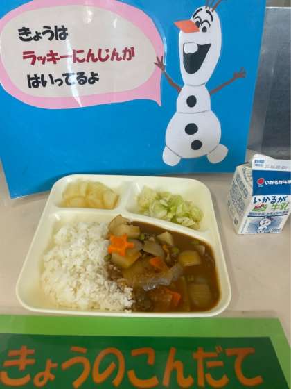 ●ハヤシライス ●キャベツのバジル風味サラダ ●洋なし缶詰 ●牛乳