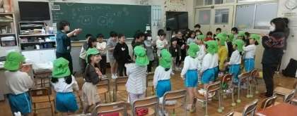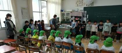 校区にある「こでまり保育園」の年長さんたちが、学校見学に来ました。
