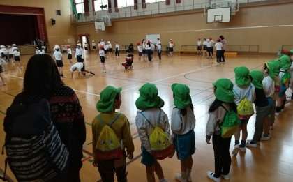 3年生が、体育館で体育をしているところも見学しました。