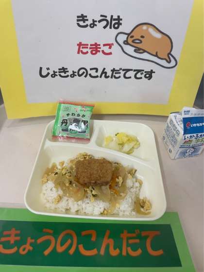 ●カツ丼(鶏卵除去献立) ●はくさいの甘酢あえ ●ソフト黒豆 ●牛乳