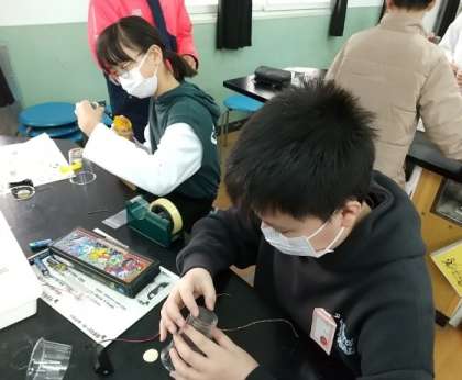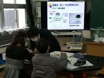 ゲストティーチャーに来ていただき、6年生が、スピーカーづくりにチャレンジしています。