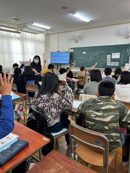 CーNETの先生の発音をよく聞いて、アルファベットクイズに答えます。積極的に手を挙げて、授業に参加していました。カード取りゲームは大変盛り上がりました。