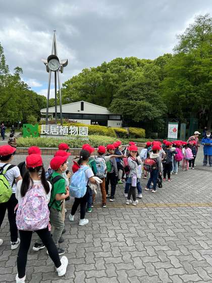 長居公園に到着しました。天候にも恵まれ、公園内にはきれいな花がたくさん咲いています。今から自然史博物館に入ります。
