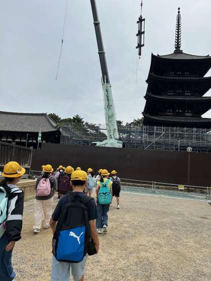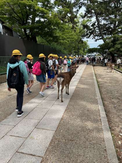 奈良公園に着きました。興福寺五重塔は工事中でしたが、奈良の歴史ある街並みを楽しんでいます。