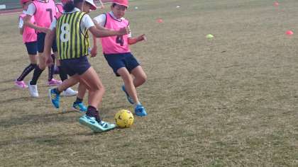 男女一緒。まだ体力の差は小さいようです。 ぶつかり合いでは、女子は負けていません。