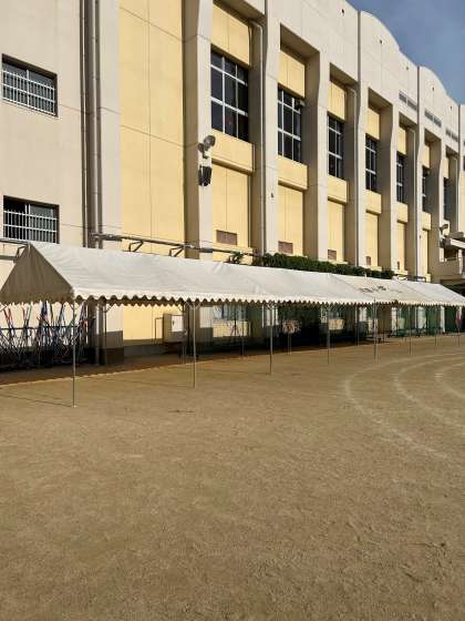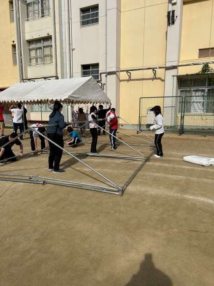 子どもたちが帰ったあと、教職員で運動会用のテントを張りました。息もぴったりで、あっという間に完成。さすが「チーム桃陽」です。最近、日差しが強くなってきたので、テントを活用しながら運動会練習を進めていきます。